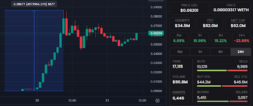 Data from DEX Screener reveals that the token’s price exploded by a jaw-dropping 4,000,000% following its listing on LeetSwap, showcasing the remarkable interest in the project.