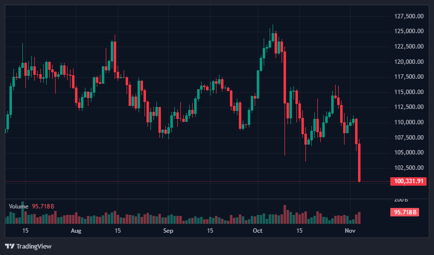 However, Bitcoin and the rest of the market are facing turmoil as investors turn bearish. At press time, BTC is barely holding on to $100K (AU$154K), down nearly 20% in the last 30 days, according to data from CoinMarketCap.