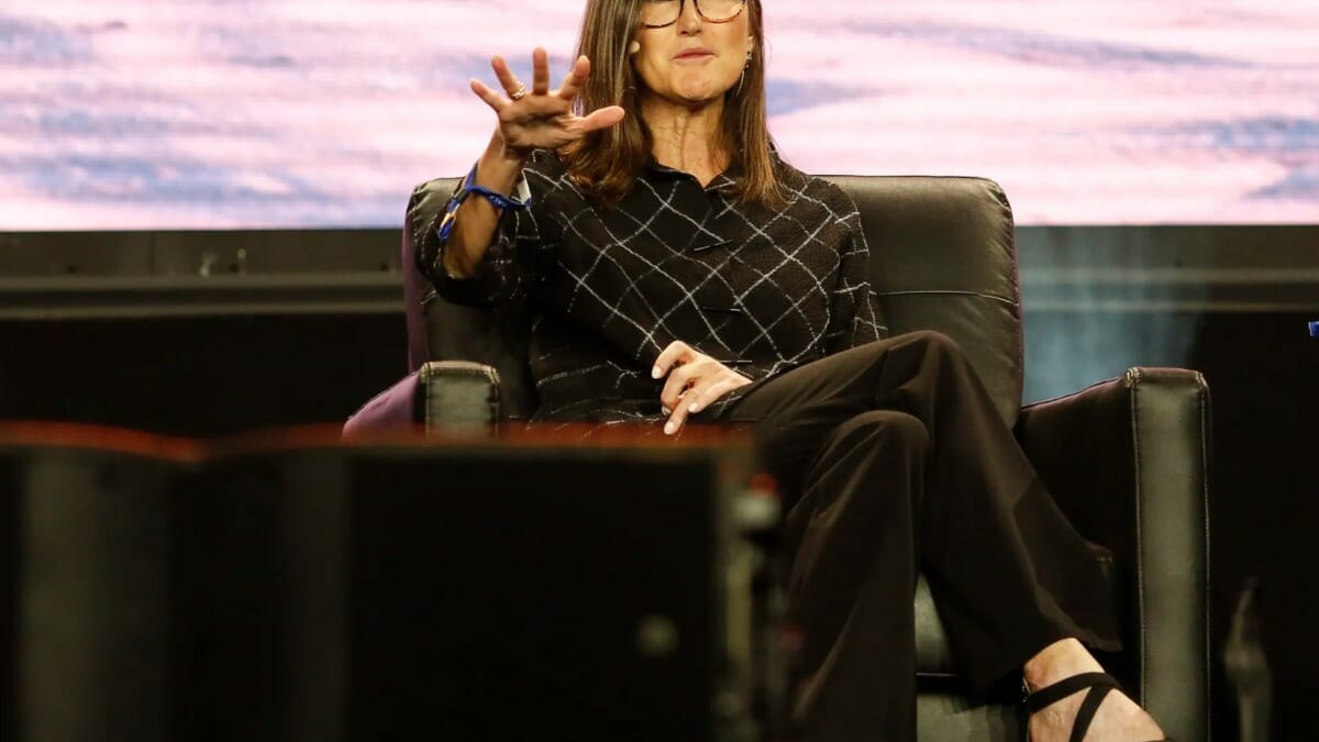 Ark Invest CEO Cathie Wood (Marco Bello/Getty Images, modified by CoinDesk)