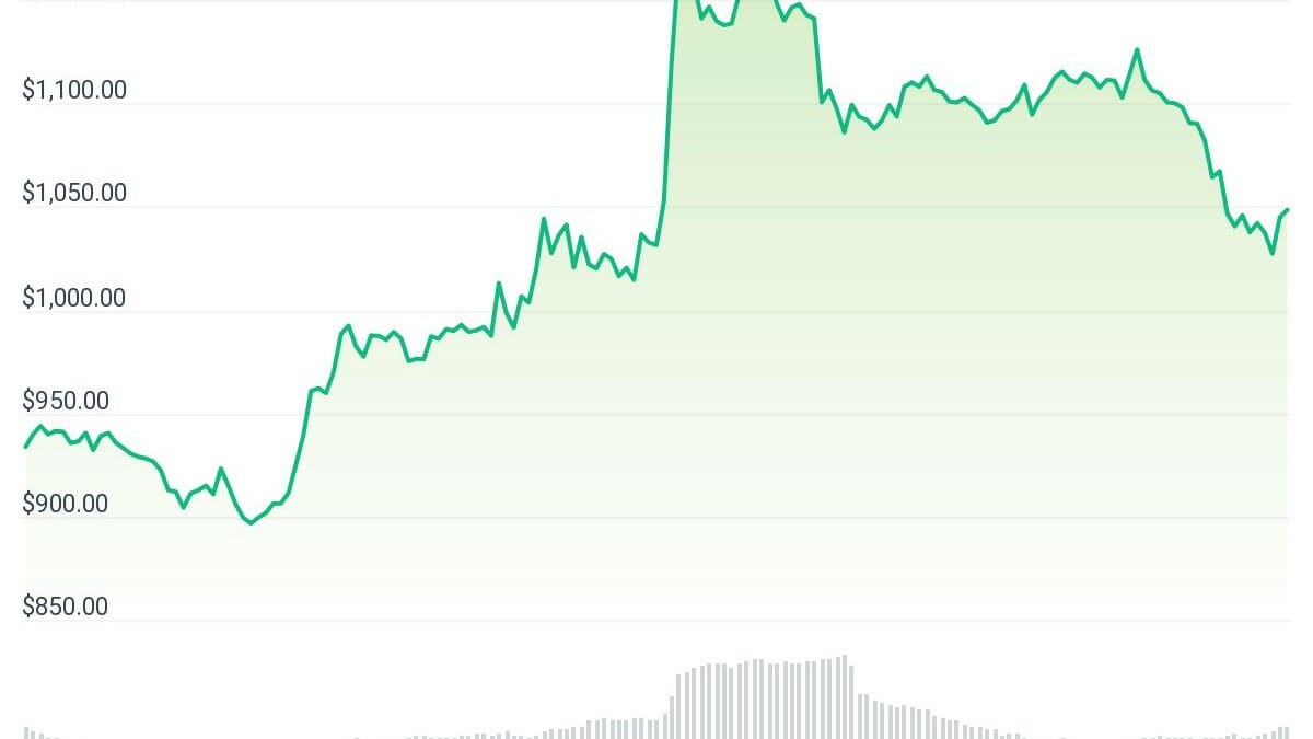 With a circulating supply of 900,000 MKR tokens, the cryptocurrency’s market cap is $933.8 million, positioning Maker (MKR) as a significant player in the DeFi space.