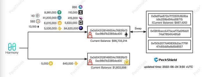 On June 24th, 2022, the Harmony “Horizon Bridge” suffered a severe breach, resulting in the theft of various crypto assets with a combined value of $99.6 million. The perpetrators behind this hack exchanged the stolen crypto-assets for Ether and skillfully concealed their illicit gains using the now-sanctioned Tornado Cash.