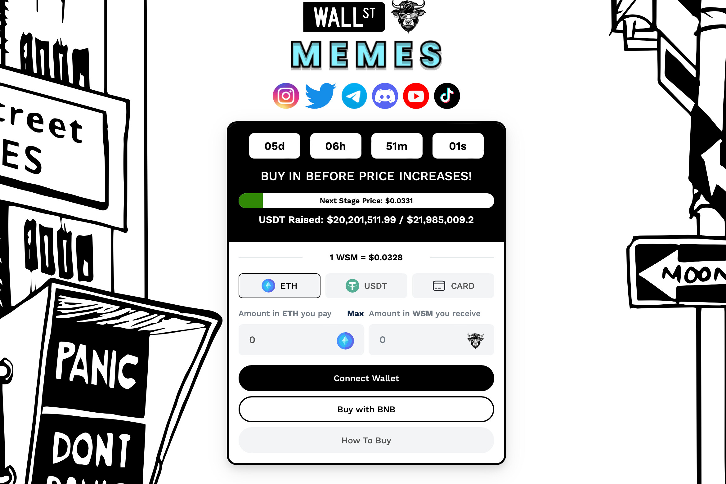 New investors can get involved in the sale by going to the official Wall Street Memes website and connecting their crypto wallets, with 1 WSM currently being sold at $0.0328.