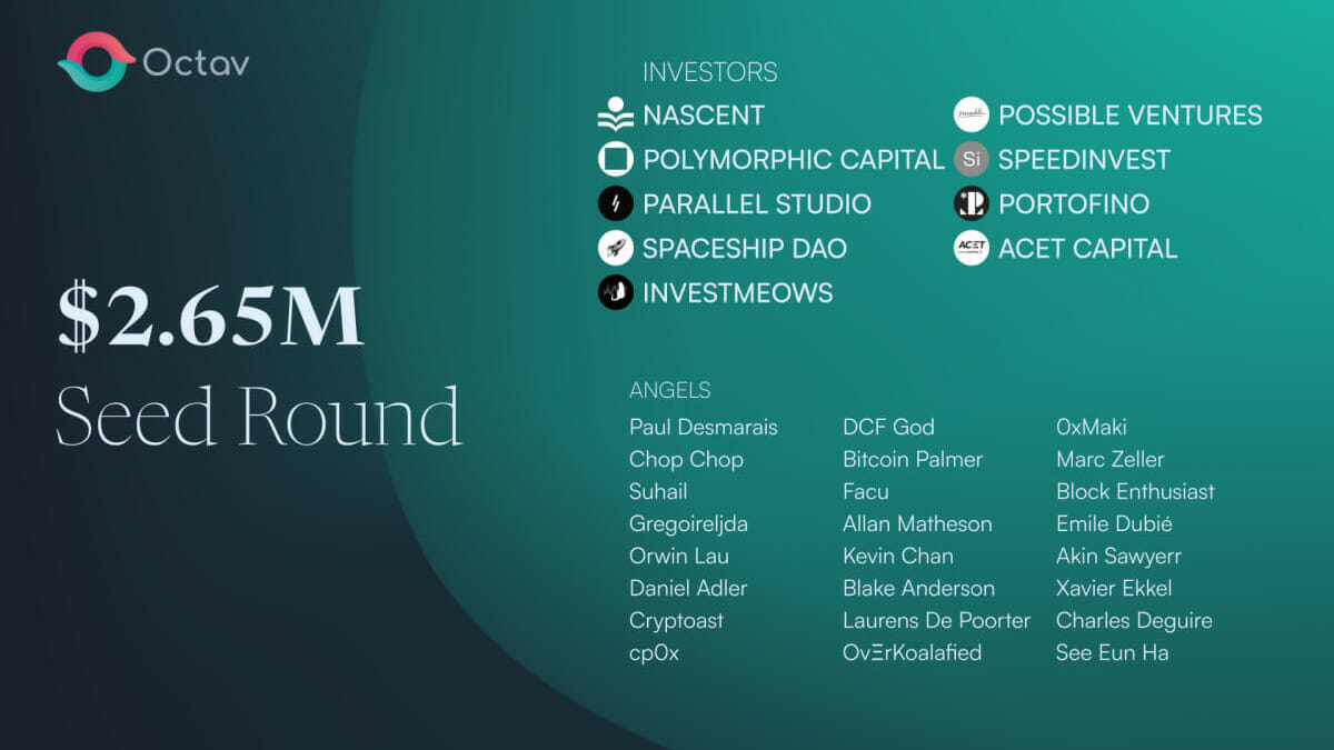 Octav is led by Mathieu Baril & Luc Blackburn, both of whom have previously worked at companies like Zapper, Accedian Network and Otodata before starting Octav. Octav boasts a variety of esteemed Investors including Nascent, Polymorphic Capital, Parallel Studio, Spaceship DAO, Investmeows, Possible Ventures, Speedinvest, ACET capital, Paul Desmarais, CEO of Sagard holdings, and Mark Zeller from AAVE.