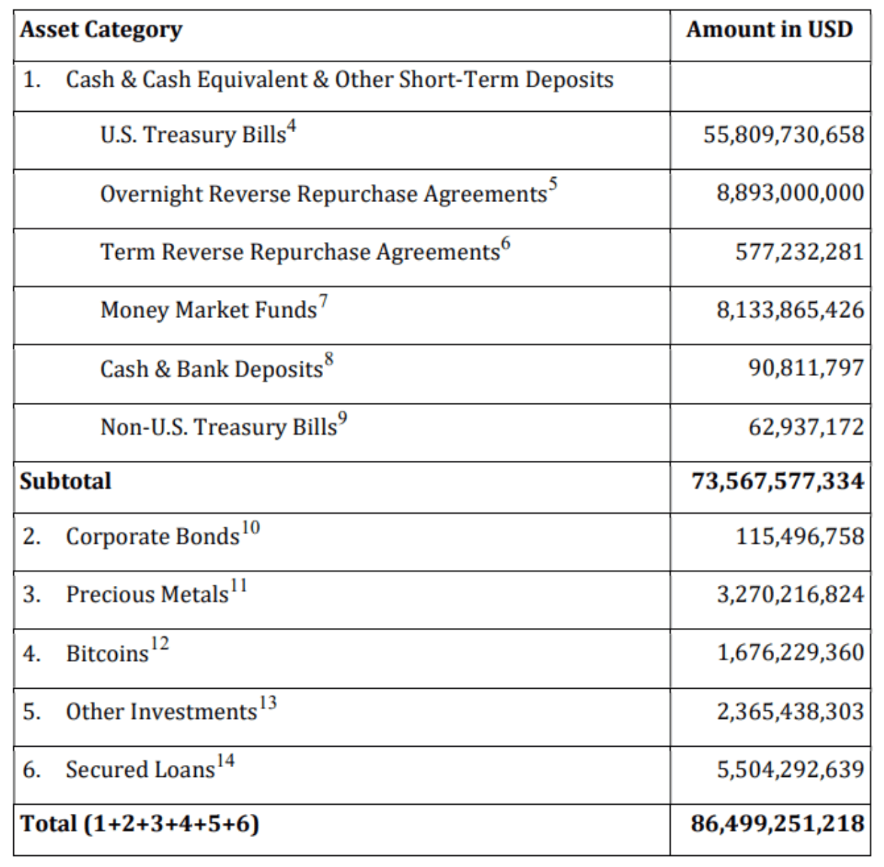 Both Q1 and Q2 reports show Tether’s increased reliance on US treasuries. The latest Q2 attestation accounted for Tether Holdings Limited owning at least $86.5 billion in consolidated assets.