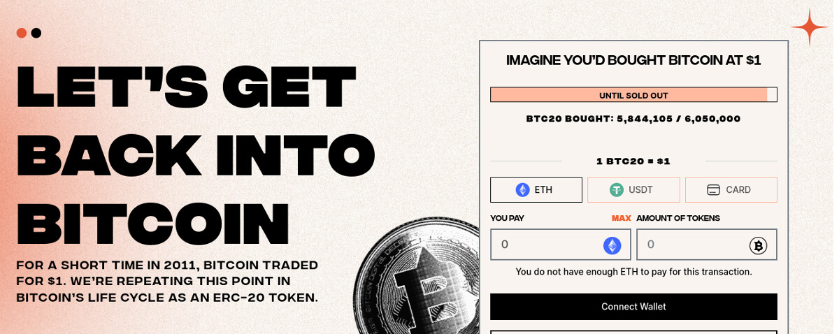 For interested investors, BTC20 can be acquired through the platform’s website using ETH, USDT, or credit/debit cards.