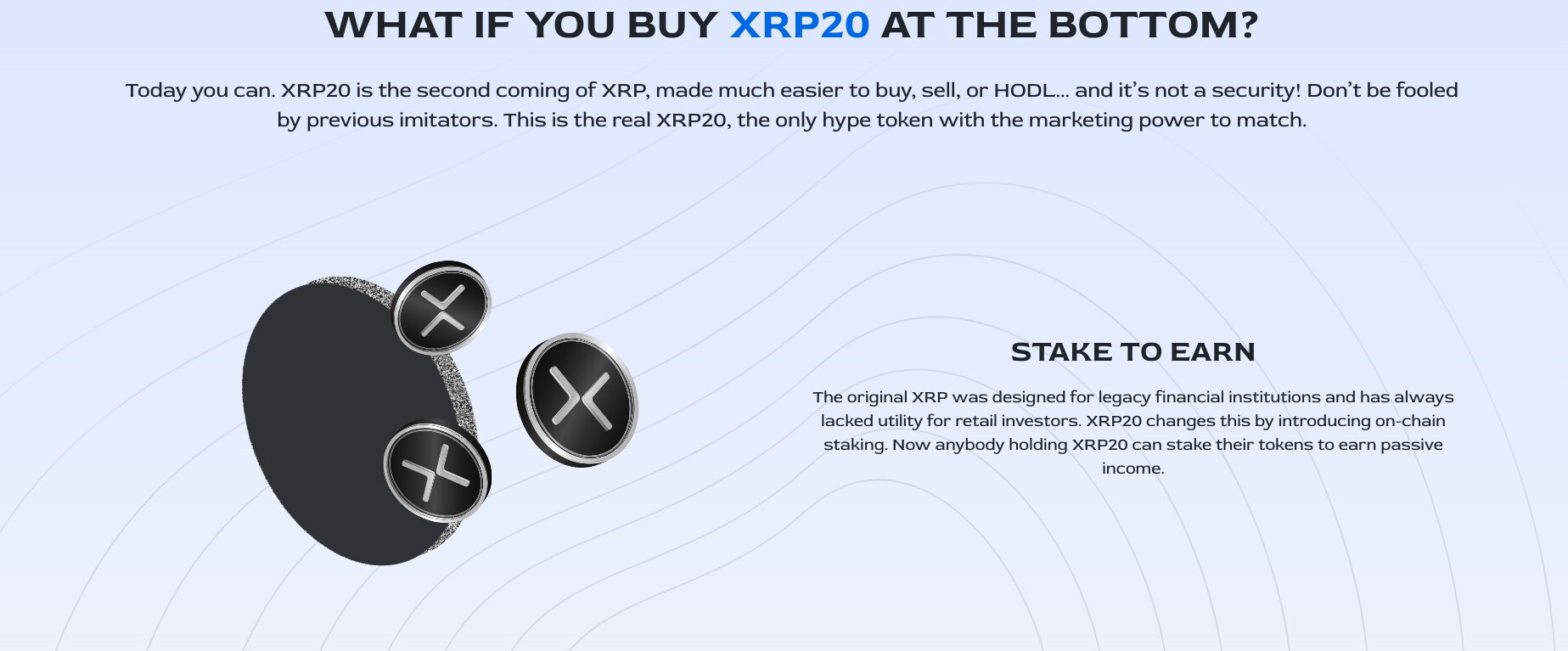 XRP20, a distinctive proof of stake Ethereum token. XRP20 is engineered to emulate the philosophy and tokenomics of Ripple (XRP), but with a particular focus on retail investors.