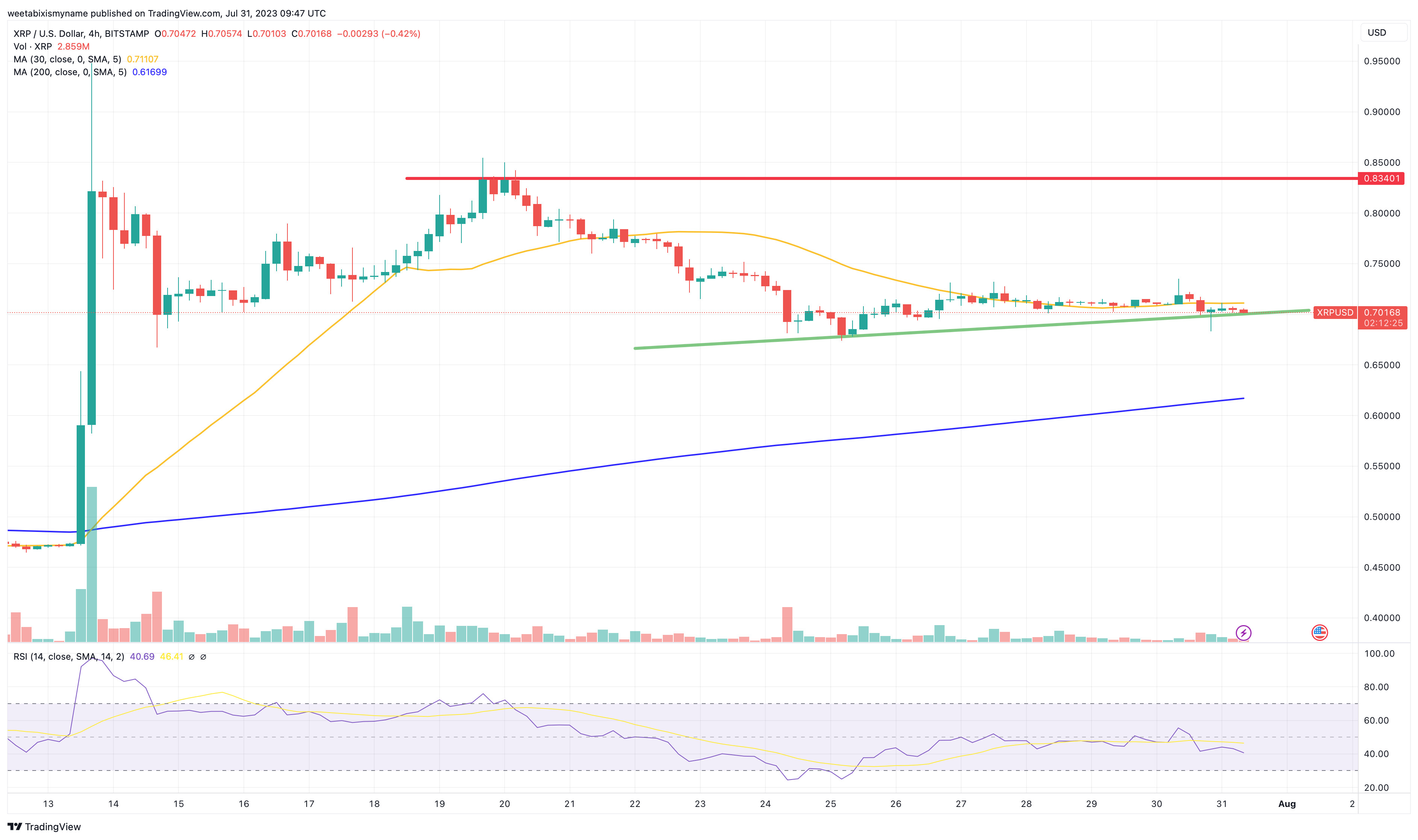 The XRP price has dipped by 1% in the past 24 hours, with its slide to $0.703057 coming as the cryptocurrency market as a whole barely moves today.