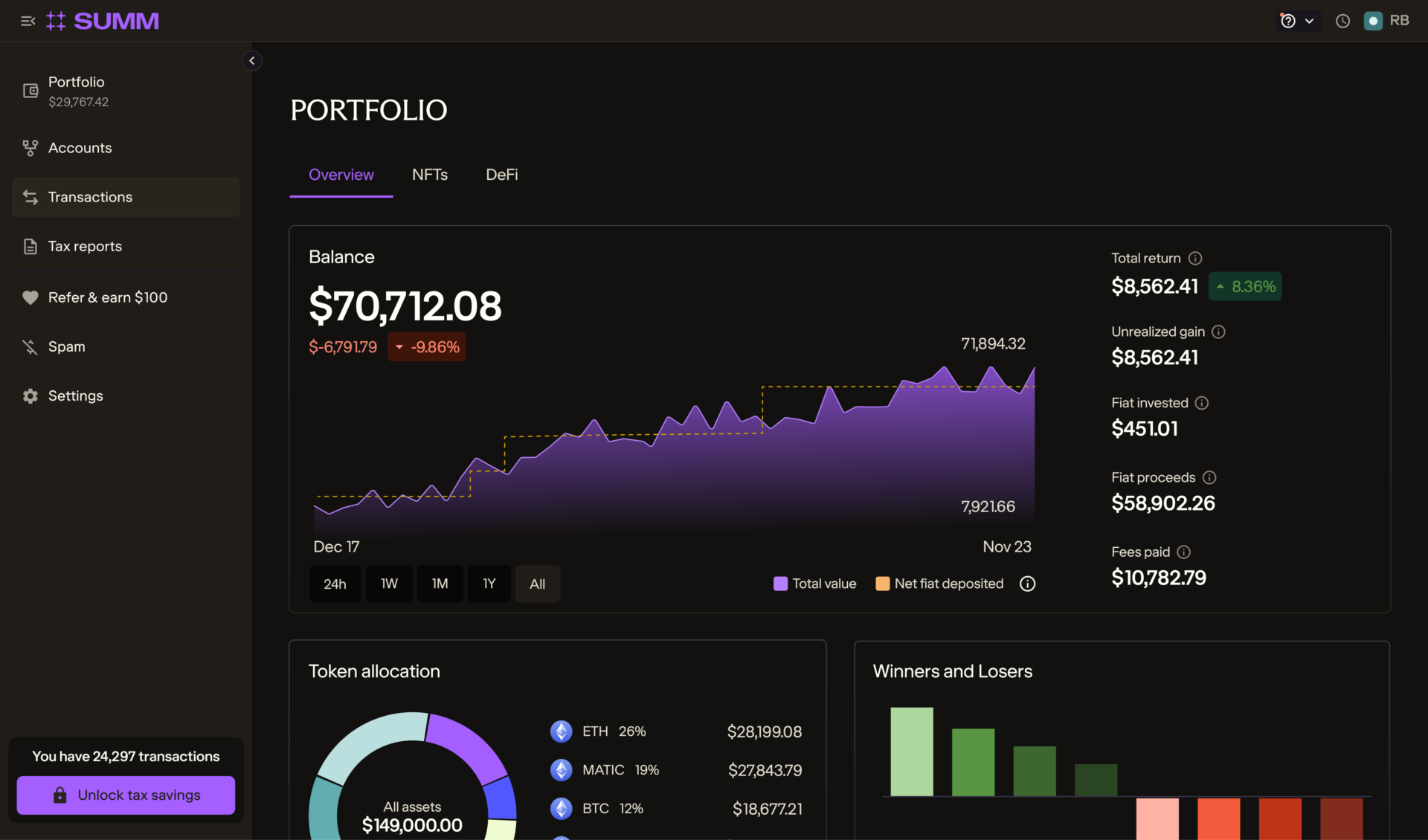 Summ supports a massive range of integrations, whether investors use centralised exchanges or popular DeFi platforms. There are currently over 3,500 platforms to choose from, including prominent trading platforms like Swyftx, Binance, Coinbase and Independent Reserve.